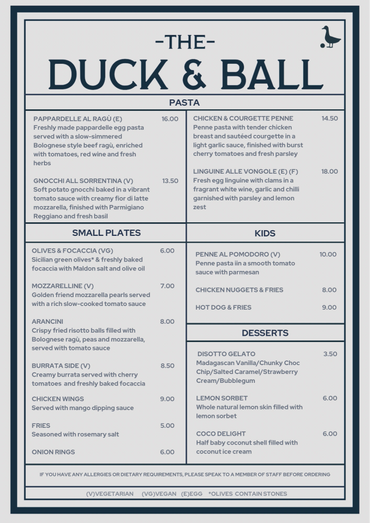 The Duck & Ball Main Menu